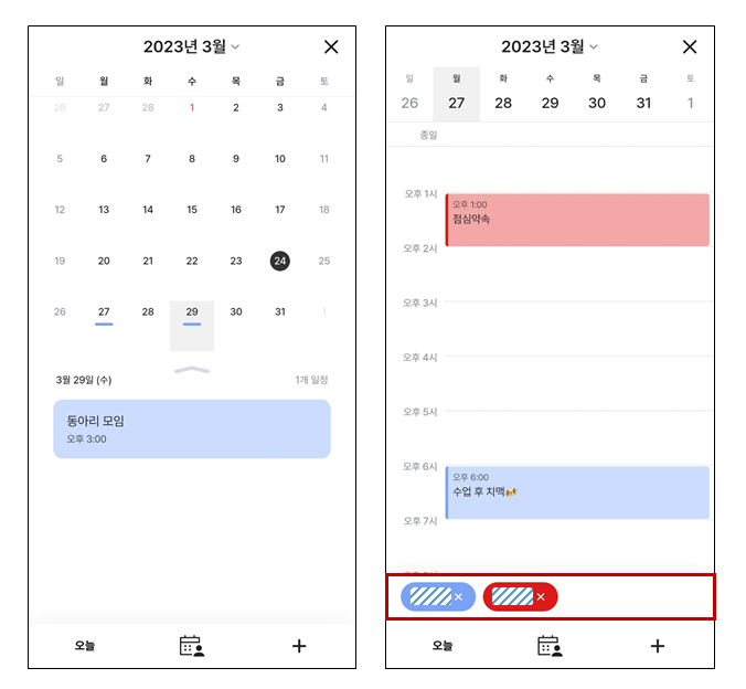 수업시간표 및 각종 개인 일정을 캘린더에 등록할 수 있습니다. 등록한 일정을 다른 사람들과 공유하고 그룹별 일정을 관리할 수 있습니다. -